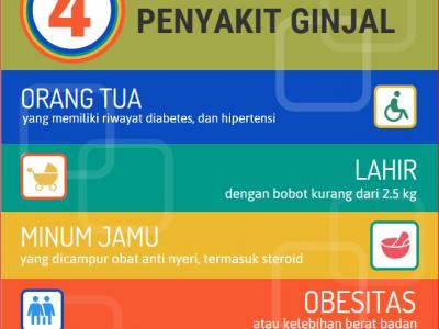 Rumah Ginjal - Empat kalangan yang paling berisiko penyakit ginjal Orang Tua, yang memiliki riwayat diabetes, dan hipertensi Lahir, dengan bobot kurang dari 2.5 kg Minum Jamu, yang dicampur dengan obat anti nyeri, termasuk steroid. Obesitas, atau kelebihan berat badan.